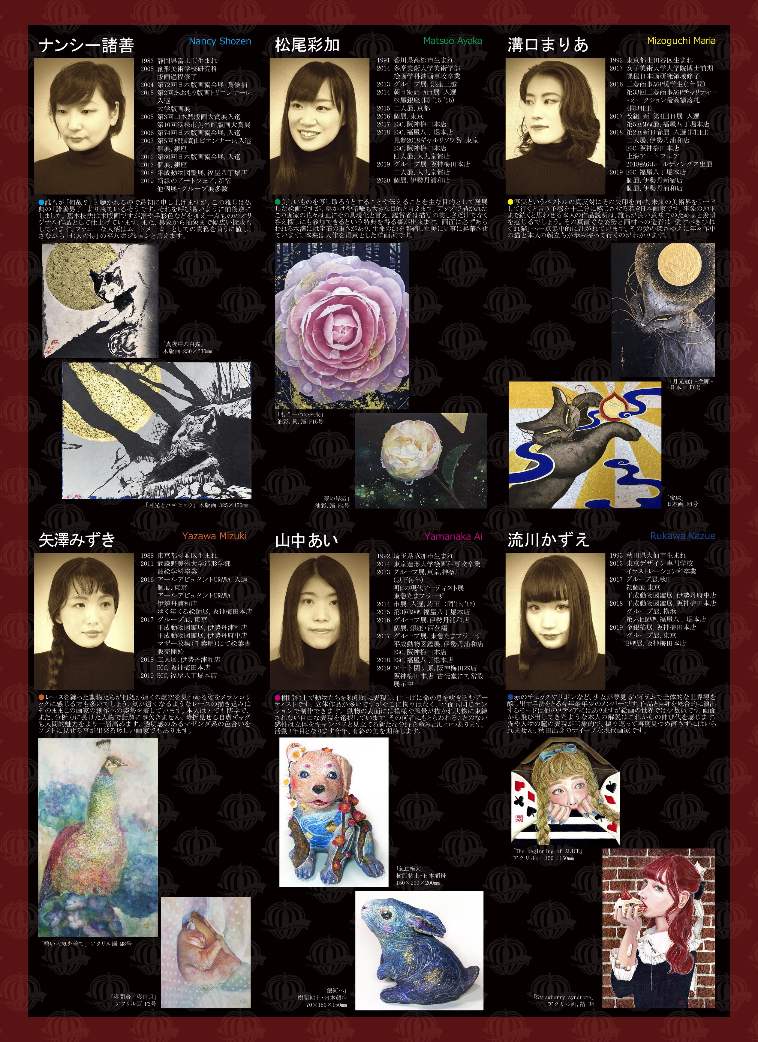 出品作家(決定順・敬称略) 加納芳美、原田愛、斎藤理絵、正垣有紀、齋藤悠紀、ナンシー諸善、椿あぐり、河端通浩、三浦麻梨乃