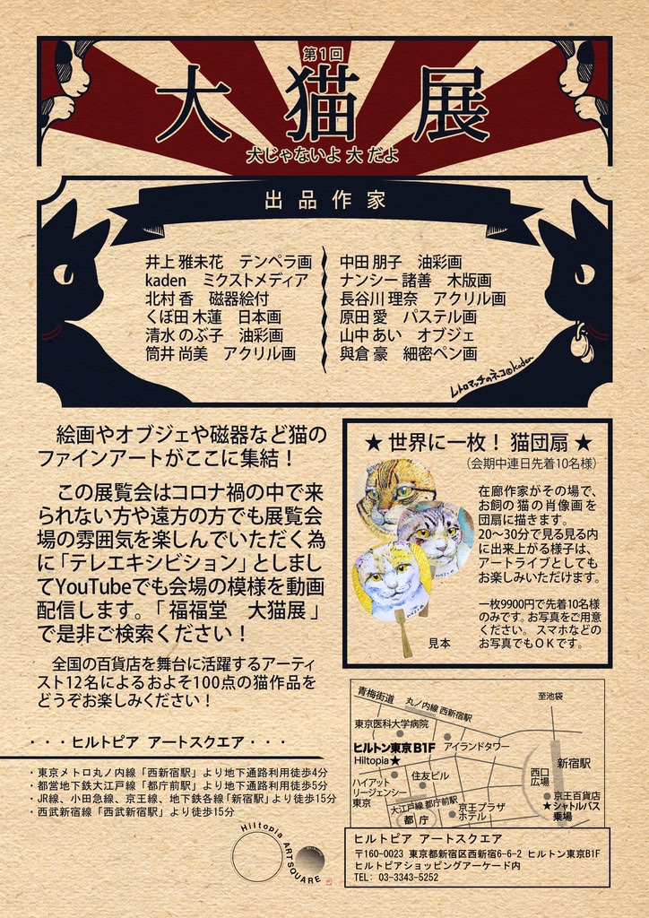 ◼️2022.1/4(火)~11(火)(日程変動の可能性があるため仮予定です。) 「全員集合!虎猫展」 伊勢丹浦和美術画廊 終了しました。