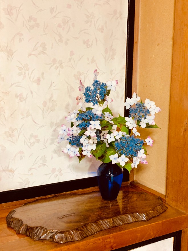紫陽花と青い花瓶 投稿日: 2019年6月10日2020年4月5日 投稿者: ナンシー諸善 カテゴリー: ブログ 中学生の頃、ガラス博物館で一目惚れして買った青い花瓶。今でもお気に入り。今年は庭の紫陽花を生けてみたら河原崎奨堂の紫陽花の木版画のようになった! 共有: クリックして X で共有 (新しいウィンドウで開きます) X Facebook で共有するにはクリックしてください (新しいウィンドウで開きます) Facebook いいね 読み込み中… 関連