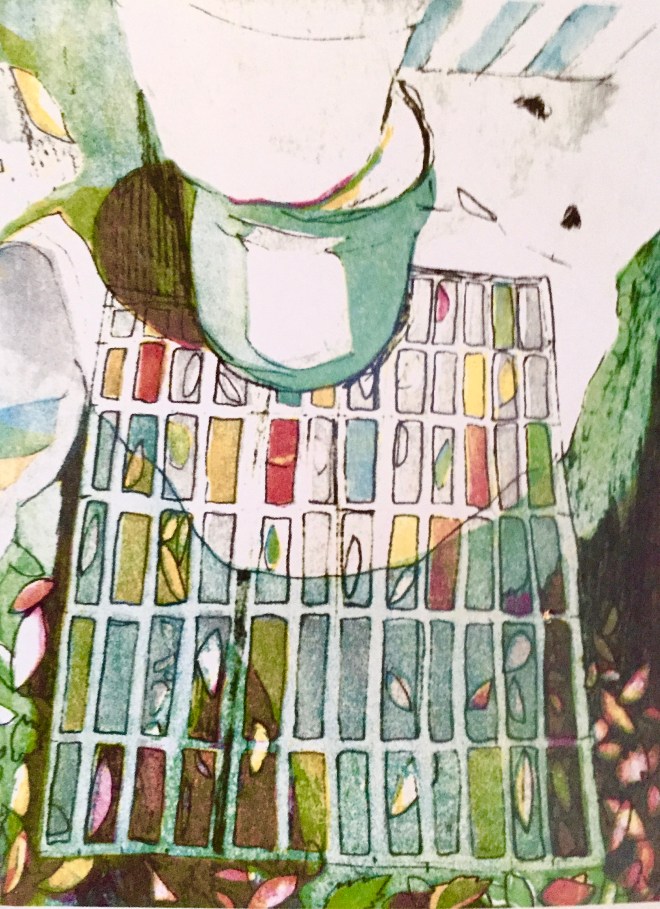 サイズはA4が一回り小さい位で、木版画の水性摺りの作品です。この頃は主線を鉛筆で書いてからPCで加工して和紙にプリンターで出力してから木版画を重ねていました。結構「線」へのこだわりが強くて理想の「線」を今も探しています。デジタルプリントの前は木版リトグラフの線の上に、木版画の線を重ねて滲んだような線を表現していました。理想に近い線で言えば、銅版画のドライポイントと言う技法での線が結構いいところまでいっているんですが、既に色んな作家がやっているのでねー。みんながやっていることをやっても仕方がないと思うタイプなので今のところ除外しています。あとは、アクリル板を引っ掻いて凹版画にしてみたり。木材を耐水性にさせて凹版画にしてみたり。