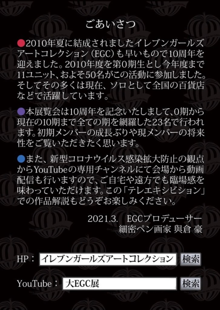EGC展が10周年を迎え、その記念展示会です。