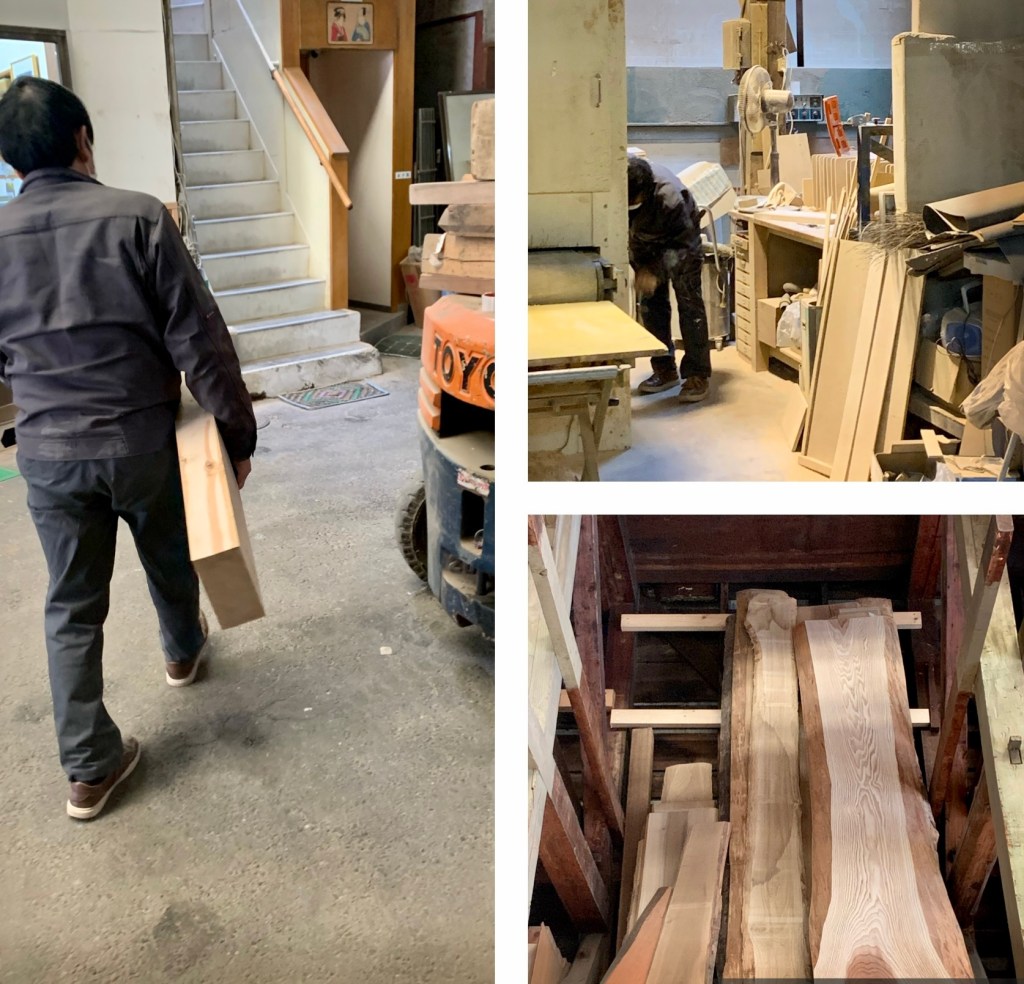 無事に昨日は展示会が終わり、今日は次回作に向けて木材屋さんへ行きました。優しい職人さんに頑張ってもらって木が反らないギリギリの厚さにカット、研磨してくれました。