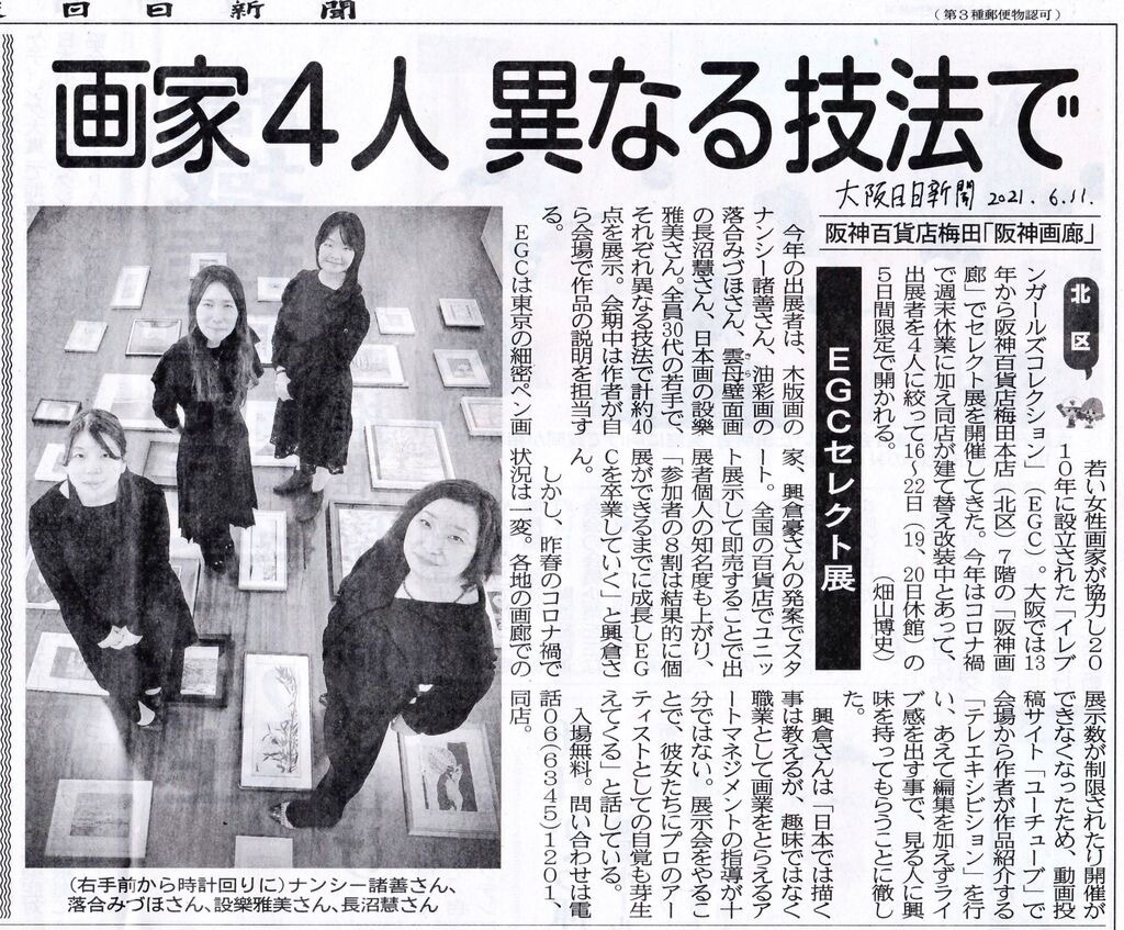 イレブンガールズアートコレクション(EGC) セレクト展が大阪日日新聞に掲載していただきました。
