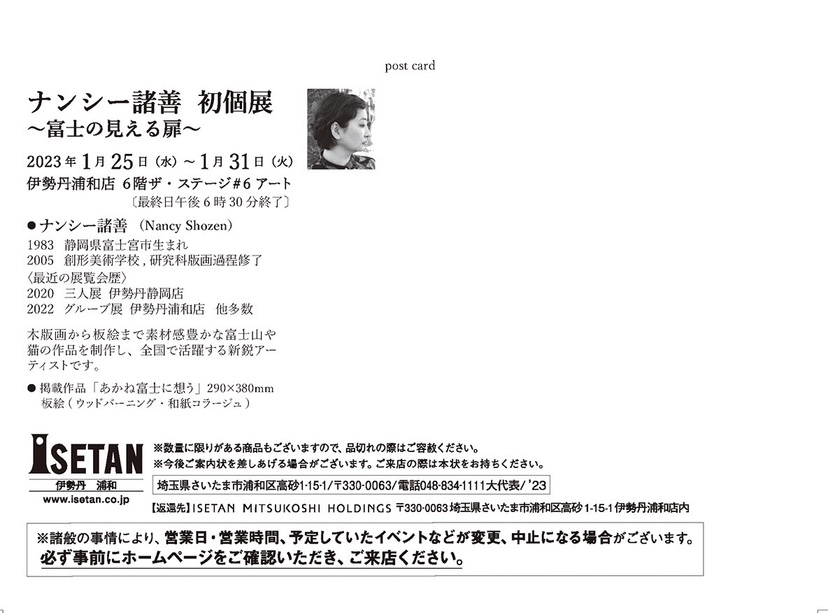 ナンシー諸善展 個展 千葉の船橋東武百貨店