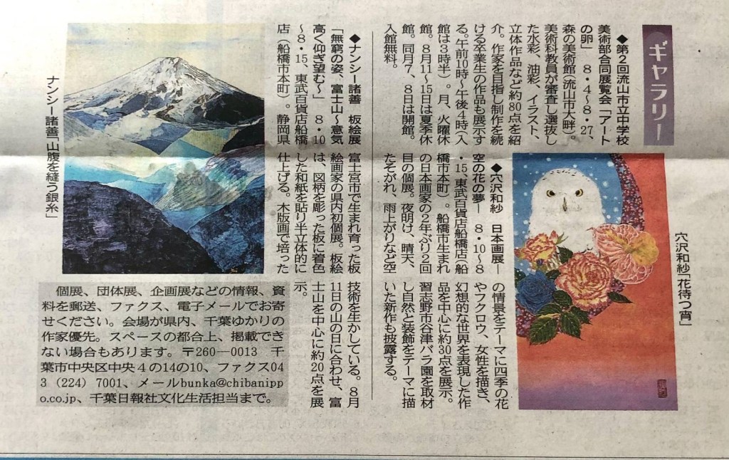 千葉県ではじめての個展となります、東武百貨店さんでもはじめてです。ハラハラ7割ワクワク3割(とてもビビっている)ありがたいことに予約ご成約で「買いもの帰りのあぜ道で」と「山腹を縫う銀糸」が決まり、感無量です。